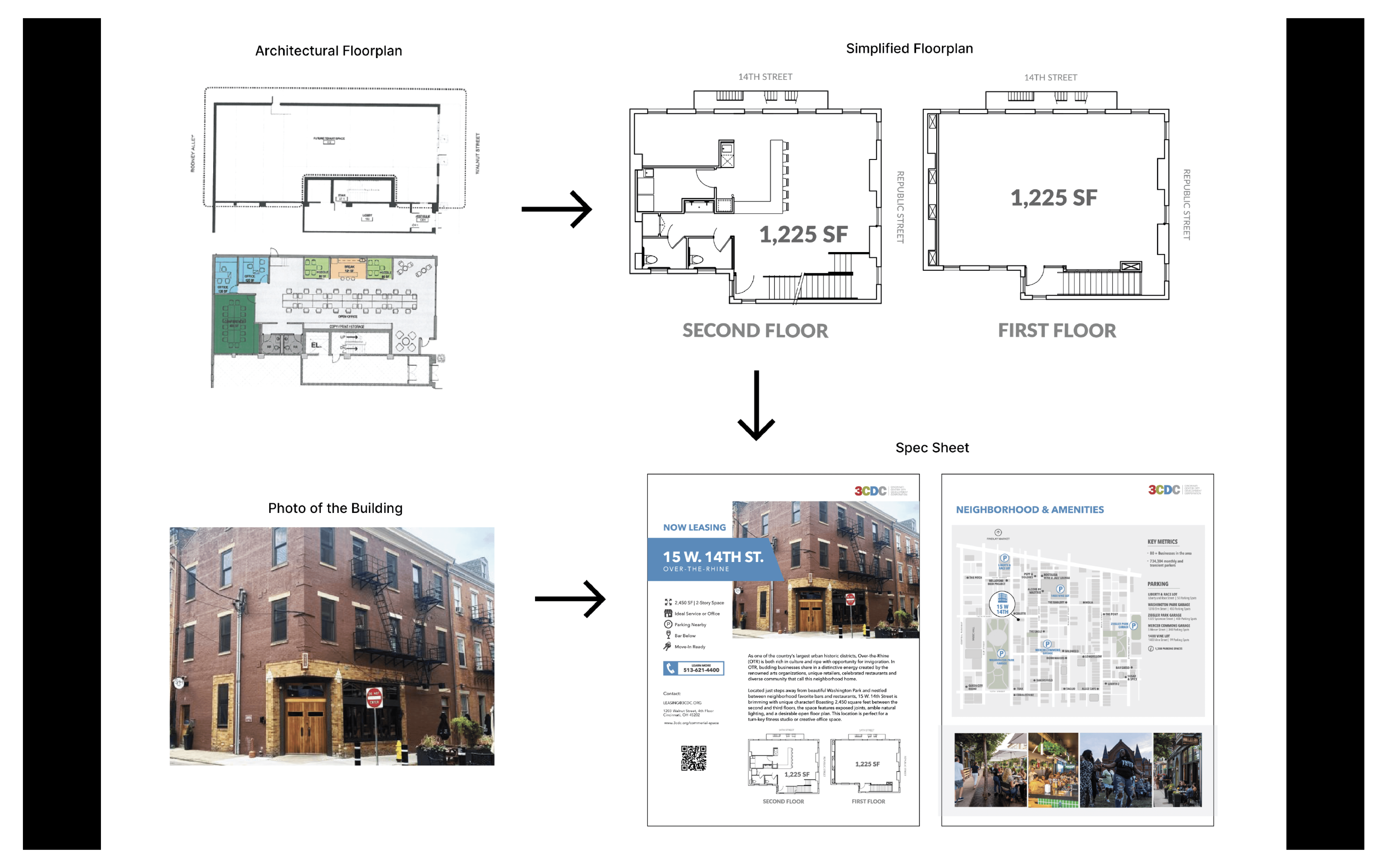 Over several months, I produced hundreds of leasing sheets designed to clearly communicate complex property information to potential buyers and tenants. Each sheet began with raw architectural plans, which I manually converted into clean, legible vector drawings to improve clarity and consistency. These plans were paired with property photography and detailed specifications including dimensions, layouts, and key features. Then transformed into a cohesive, easy-to-scan layout. The final system translated technical architectural data into accessible marketing materials that enabled faster understanding and more informed real estate decisions.
